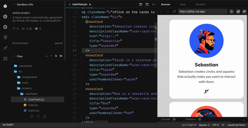 - Follow Anima’s web application to export a single component or the whole screen.